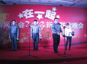 齊魯網商會新春聯(lián)歡晚會于2013年1月19日在濟南舉行。泰安海數(shù)公司作為會員單位參加了本次晚會,并為大家表演了精彩節(jié)目:歌舞三句半—海數(shù)之樂,受到了大家好評,獲節(jié)目三等獎。下面是泰安海數(shù)公司員工在晚會上表演的節(jié)目集錦照片,供大家一起分享。